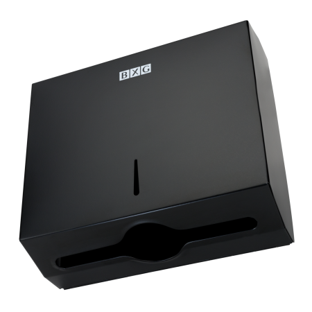 BXG-PD-5003B – предназначен для дозированной подачи листовых бумажных полотенец. Подходит для использования в туалетных комнатах средней и большой проходимости. Диспенсер выполнен из нержавеющей стали в черном стильном цвете с матовым оттенком. В основании корпуса имеется удобное, расширенное в центре вытяжное окно. Расходные материалы – листовые бумажные полотенца Z и V сложения. Смотровое окно позволяет контролировать наличие бумажных полотенец в диспенсере. Закрывается на ключ. Для удобства и оперативности монтажа в комплектацию входит установочный шаблон.