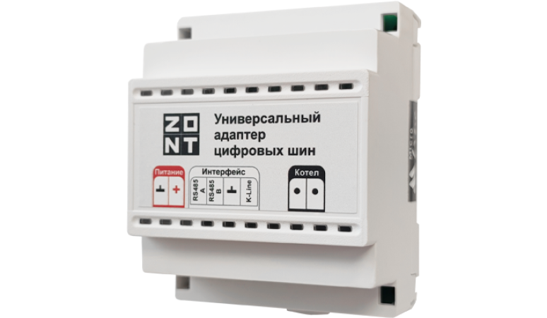 Универсальный адаптер цифровых шин предназначен для подключения термостатов и контроллеров ZONT к газовым и электрическим котлам, работающим по цифровым протоколам OpenTherm, E-BUS, BridgeNet (Ariston), BSB, Navien, Navien Deluxe One, Wolf, Kiturami – проверить наличие шины в конкретной модели котла можно в Совместимости котлов с ZONT.